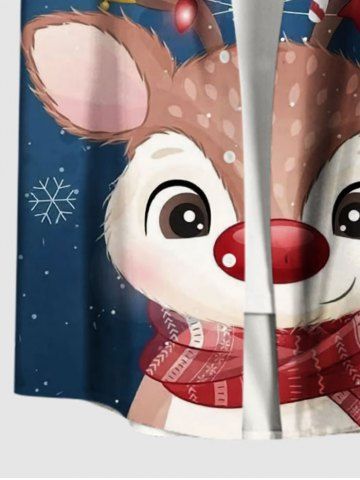 Christmas Elk Snowflake Ball Galaxy Zig Zag Print Plus Size Matching Outfit For Couples - Navy Blue