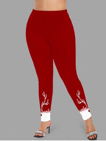 Christmas Elk Snowflake Colorblock Print Plus Size Matching Set - Red