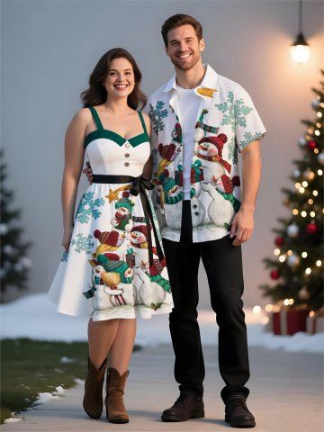 Matching Outfits > Christmas Gift Snowflake Snowman Print Plus Size Matching Outfit For Couples
