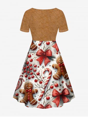 Christmas Gingerbread Candy Holly Fruit Bowknot Snowflake Print Plus Size Matching Outfit For Couples - Light Brown