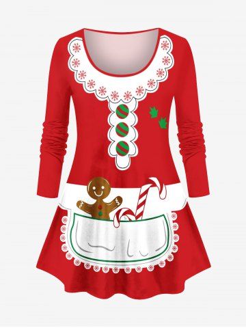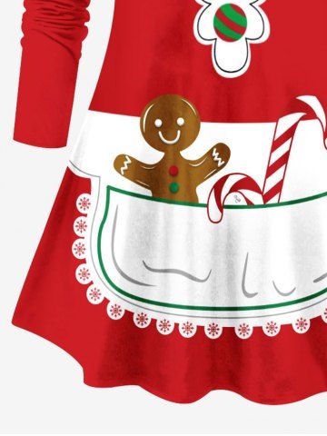 Christmas Gingerbread Candy Print Plus Size Matching Set - Red