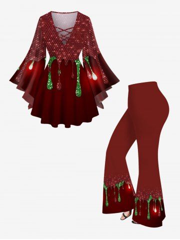 V*****a4Christmas Snowflake Print Ombre Lattice Long Sleeves T-shirt and Flare Pants Plus Size Matching SetColor: REDI got it!!!!
