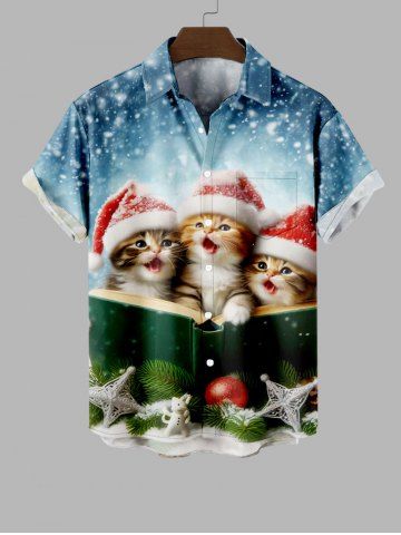 Christmas Hat Cats Snowflake Book Cross Ball Ombre Print Plus Size Matching OutfitFor Couples - Multi-a