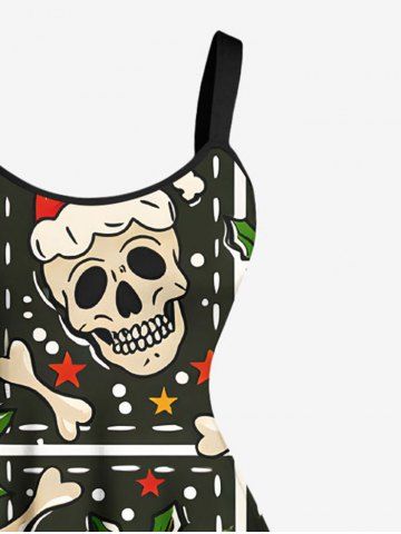 Christmas Hat Skull Holly Print Plus Size Matching Outfit For Couples - Black