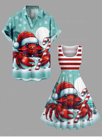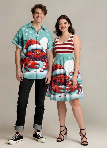 Matching Outfits > Christmas Hat Snowflake Moon Crab Candy Coconut Tree Striped Print Plus Size Matching Outfit For Couples