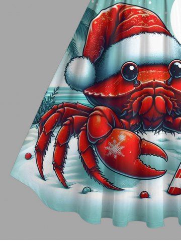 Christmas Hat Snowflake Moon Crab Candy Coconut Tree Striped Print Plus Size Matching Outfit For Couples - Light Green