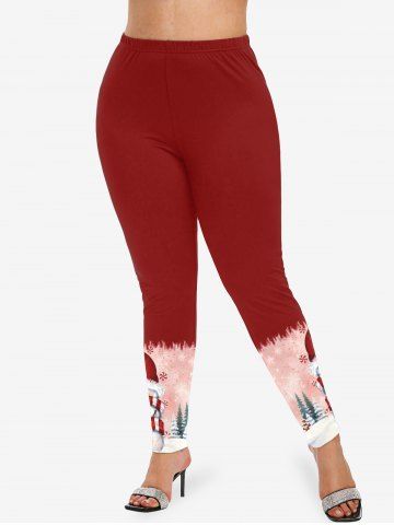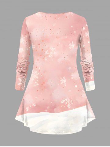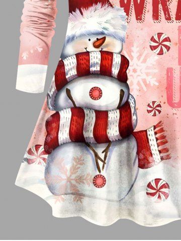 Christmas Hat Snowman Candy Letters Print Ombre Long Sleeves Women T-shirt and Leggings Plus Size Matching Set - Light Pink