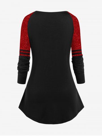 Christmas Light Elk Sparkling Sequin 3D Print Plus Size Matching Set - Black
