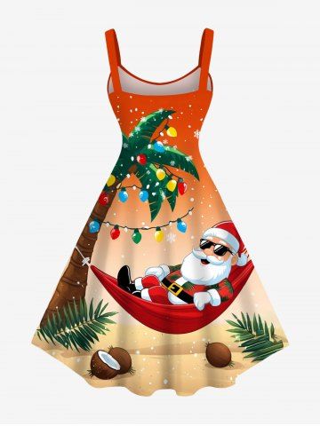 Christmas Light Snowflake Santa Claus Coconut Tree Dip Dye Ombre Print Plus Size Matching Outfit For Couples - Orange