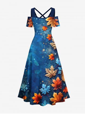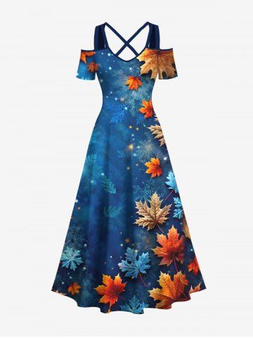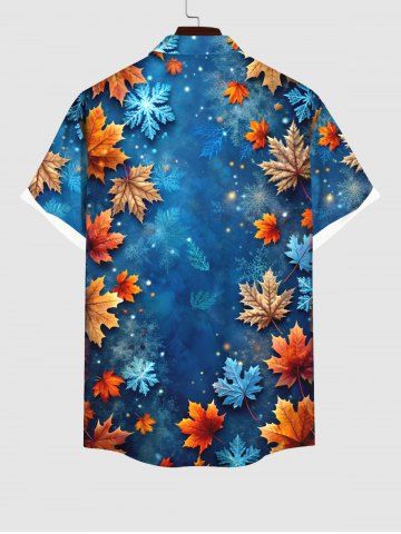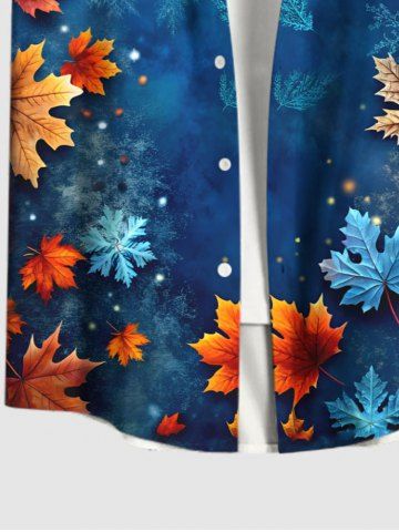 Christmas Ombre Snowflake Galaxy Maple Leaves Print Plus Size Matching Outfit For Couples - Blue