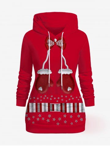 p*****p4Christmas Plus Size Bowknot Gloves Striped Stars Buckle Printed Kangaroo Pocket Hoodie and Flare Pants OutfitColor: REDabsolutely adorable.... perfect for xmas day dinner.