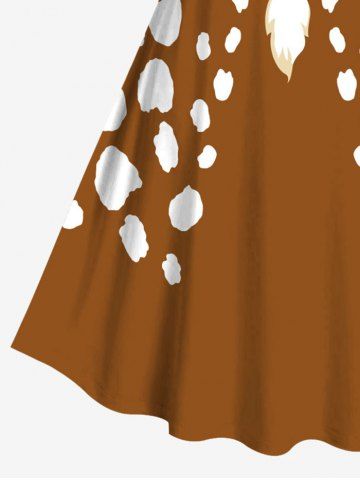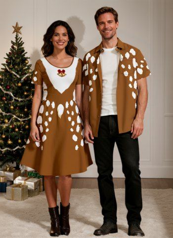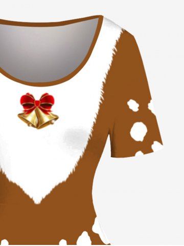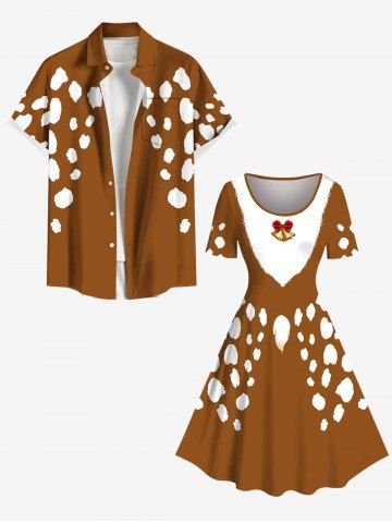 Christmas Santa Claus Beard Bell Bowknot Print Plus Size Matching Outfit For Couples - Light Brown