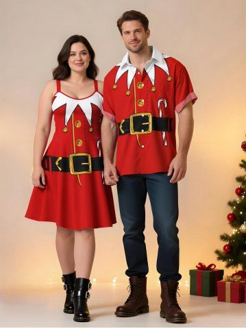Christmas Santa Claus Costume Candy Print Plus Size Matching Outfit For Couples - Red