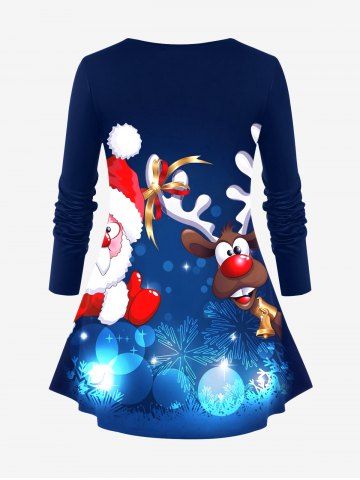 Christmas Santa Claus Elk Light Snowflake Print Plus Size Matching Set - Navy Blue
