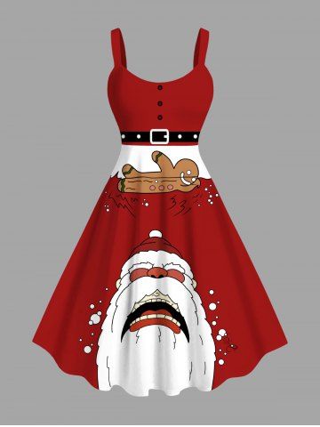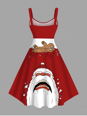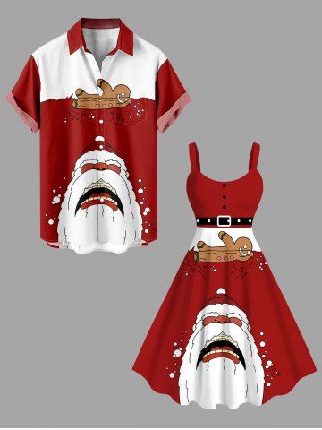 Christmas Santa Claus Gingerbread Colorblock Print Plus Size Matching Outfit For Couples - Red