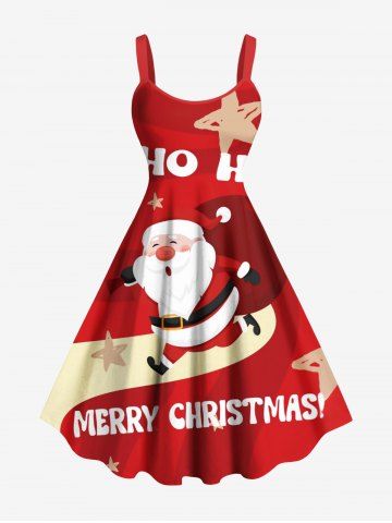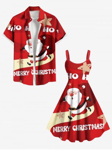 Christmas Santa Claus Letters Stars Print Plus Size Matching Outfit For Couples - Red
