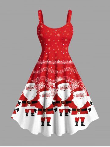 Christmas Santa Claus Snowflake Colorblock Musical Notes Print Plus Size Matching Outfit For Couples - Red