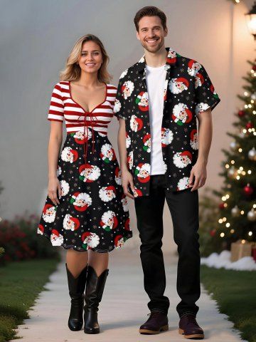 Christmas Santa Claus Snowflake Print Plus Size Matching Outfit For Couples - Black