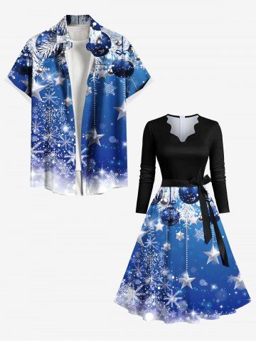 Matching Outfits > Christmas Snowflake Ball Ombre Bubble Print Plus Size Matching Outfit For Couples