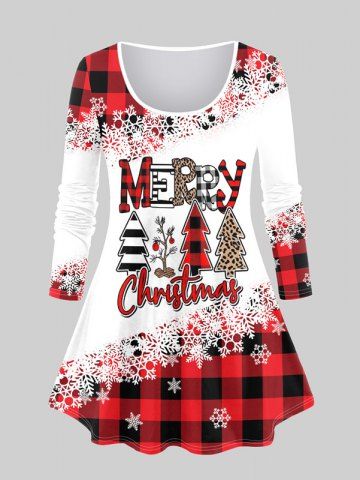 s*****w5Plus Size Christmas Snowflake Checked Tree Print T-shirtColor: RED Size: 1X | US 14-16This tunic/blouse is great for the holidays. I live in the way down south Texas where it doesn't get very cold and dressing in anything Holiday is super hot. This was perfect for the weather here and fun to wear.