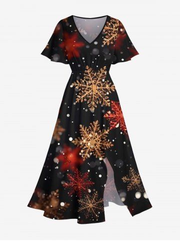 Christmas Snowflake Glitter 3D Print Plus Size Matching Outfit For Couples - Black