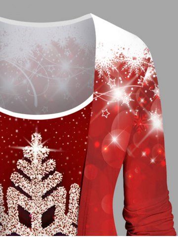 Christmas Snowflake Glitter 3D Print Plus Size Matching Set - Red