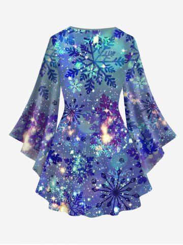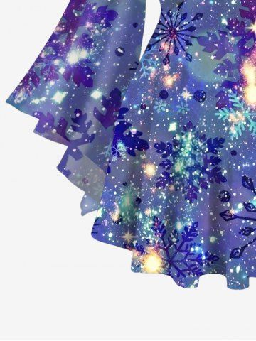 c*****r5Plus Size Christmas Snowflake Ombre Galaxy Glitter 3D Print Lattice Crisscross Flare Sleeve T-shirtColor: PURPLE Size: 1XConforme aux attendus. Taille ok et très classe pour les fêtes de fin d’année