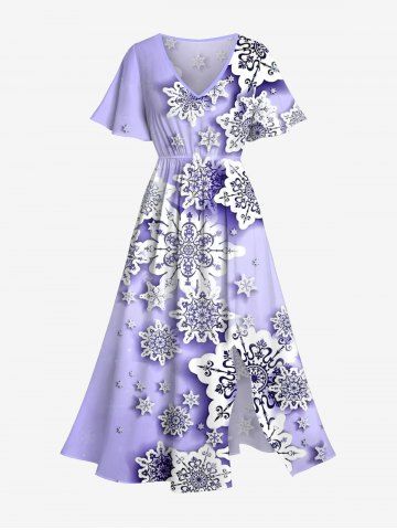 Christmas Snowflake Print Plus Size Matching Outfit For Couples - Purple