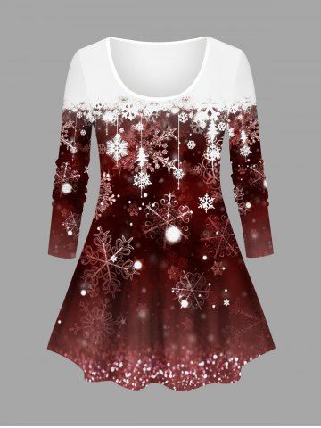 Christmas Snowflake Tie Dye Colorblock Print Plus Size Matching Set - Brick Red