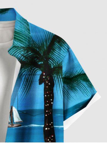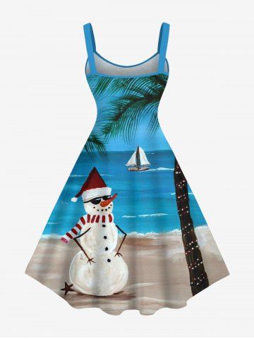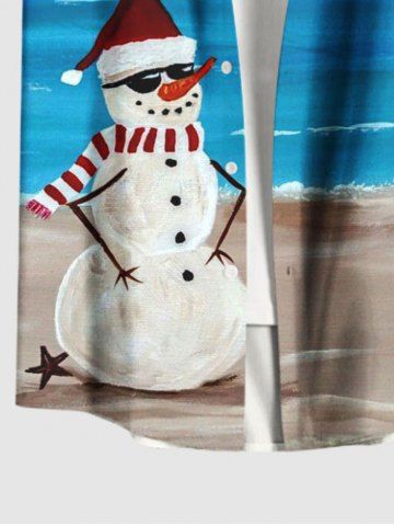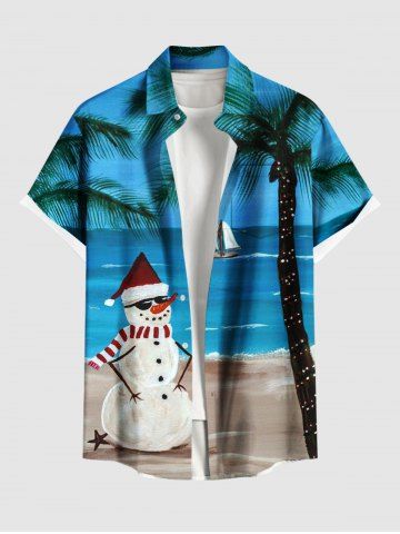 Christmas Snowman Coconut Tree Sea Sailboat Print Plus Size Matching Outfit For Couples - Sky Blue