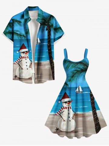 Matching Outfits > Christmas Snowman Coconut Tree Sea Sailboat Print Plus Size Matching Outfit For Couples