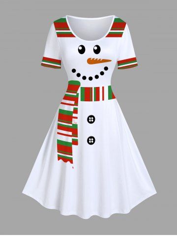 Christmas Snowman Plaid Scarf Print Plus Size Matching Outfit For Couples - White
