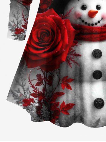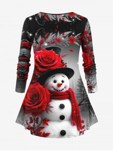 Matching Outfits > Christmas Snowman Rose Flowers Tree Print Plus Size Matching Set