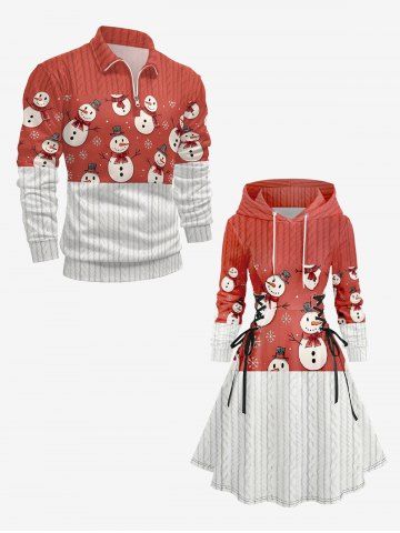 Christmas Snowman Snowflake Cable Knit 3D Print Plus Size Matching Outfit For Couples - Red