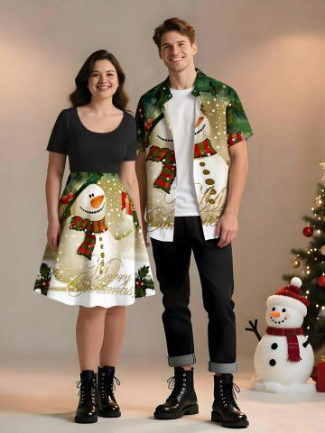 Matching Outfits > Christmas Snowman Star Snowflake Print Plus Size Matching Outfit For Couples