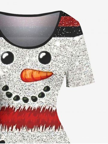Christmas Snowman Striped Print Plus Size Matching Outfit For Couples - Light Gray