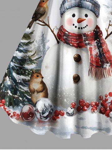Christmas Snownan Snowflake Bird Holly Fruit Print Plus Size Matching Outfit For Couples - White