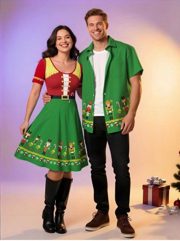 Matching Outfits > Christmas Stocking Snowflake Candy Guard Costume Print Plus Size Matching Outfit For Couples