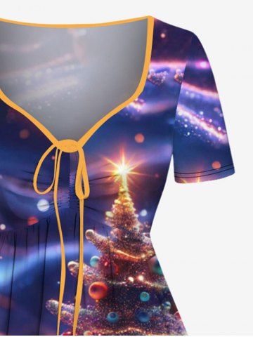 Christmas Tree Ball Light Galaxy Glitter 3D Print Plus Size Matching Outfit For Couples - Navy Blue