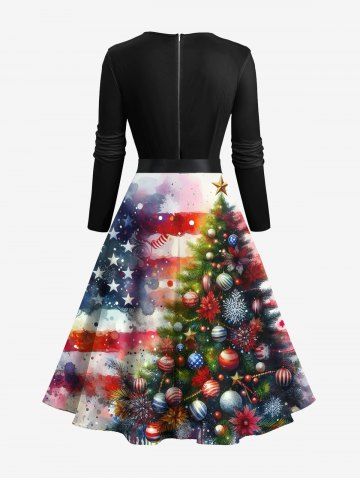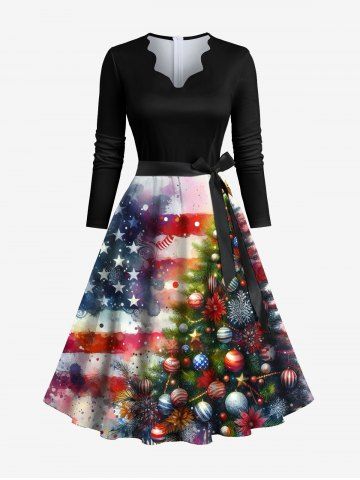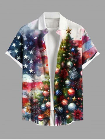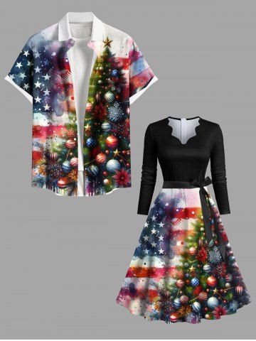 Christmas Tree Ball Patriotic American Flag Paint Splatter Print Plus Size Matching Outfit For Couples - Multi-a