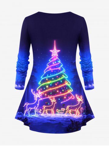 Christmas Tree Elk Light Glitter 3D Print Plus Size Matching Set - Sky Blue
