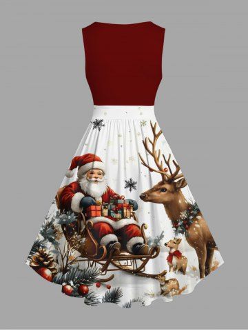 Christmas Tree Elk Snowflake Santa Claus Print Plus Size Matching Outfit For Couples - Red