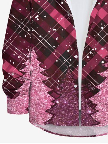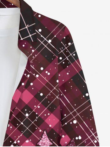 Christmas Tree Plaid Sparkling Sequin Glitter 3D Print Plus Size Matching Outfit For Couples - Deep Red