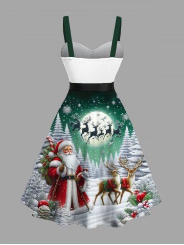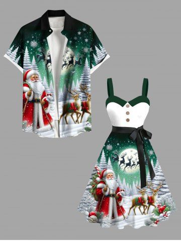 Christmas Tree Santa Claus Elk Snowflake Print Plus Size Matching Outfit For Couples - Green