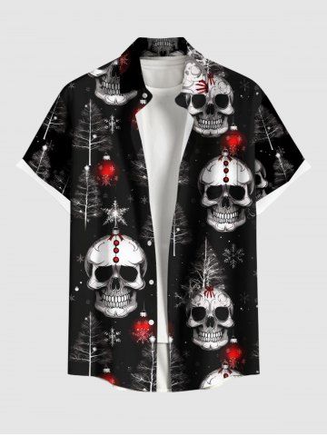 Christmas Tree Skull Snowflake Print Plus Size Matching Outfit For Couples - Black