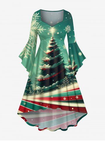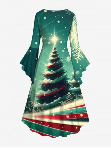 Christmas Tree Snowflake Colorful Striped Print Plus Size Matching Outfit For Couples - Green