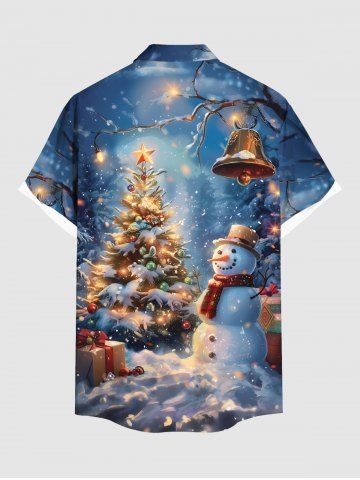 Christmas Tree Snowman Snowflake Light Bell Print Plus Size Matching Outfit For Couples - Sky Blue
