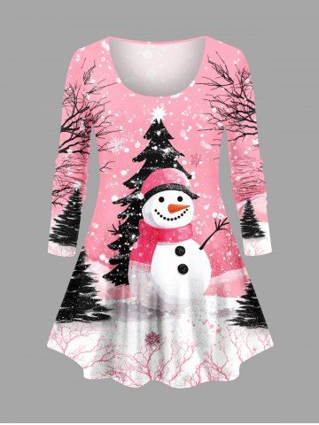 Christmas Tree Snowman Snowflake Print Plus Size Matching Set - Light Pink