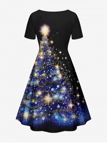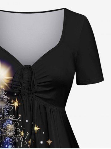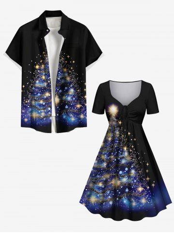 Christmas Tree Star Glitter 3D Print Plus Size Matching Outfit For Couples - Black