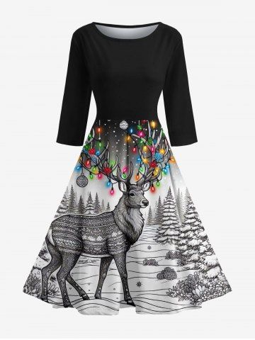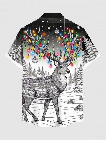 Colorful Christmas Light Elk Tree Ball Galaxy Print Matching Outfit For Couples - Black